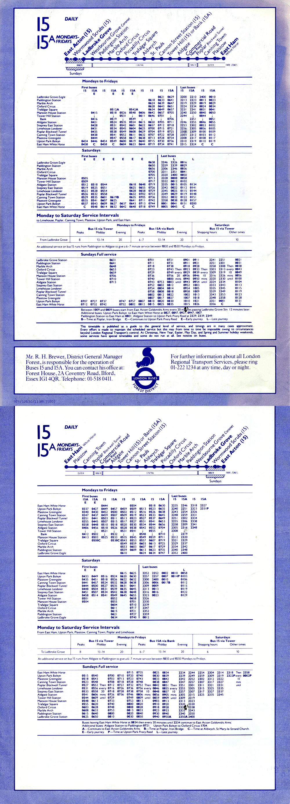 ACTON VALE Kings Arms ( Suns ) - LADBROKE GROVE ( Mon-Sat ) - EAST HAM White Horse ( Daily ) - NORTH WOOLWICH ( Mon-Sat peak journeys )