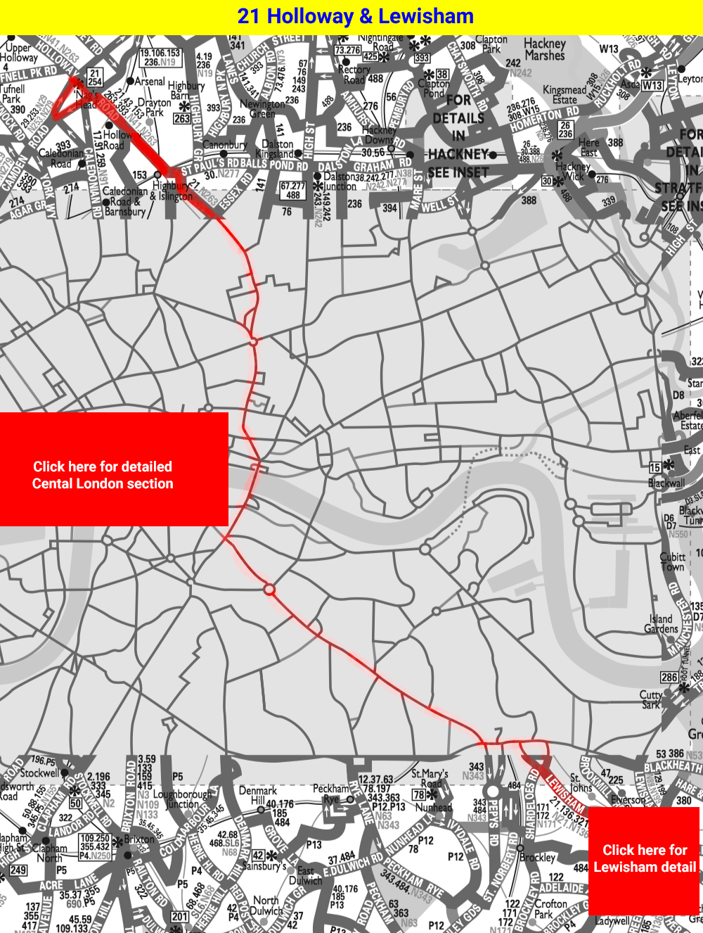 Lewisham – New Cross – London Bridge – Moorgate – Hoxton – Highbury – Holloway (Route 21)