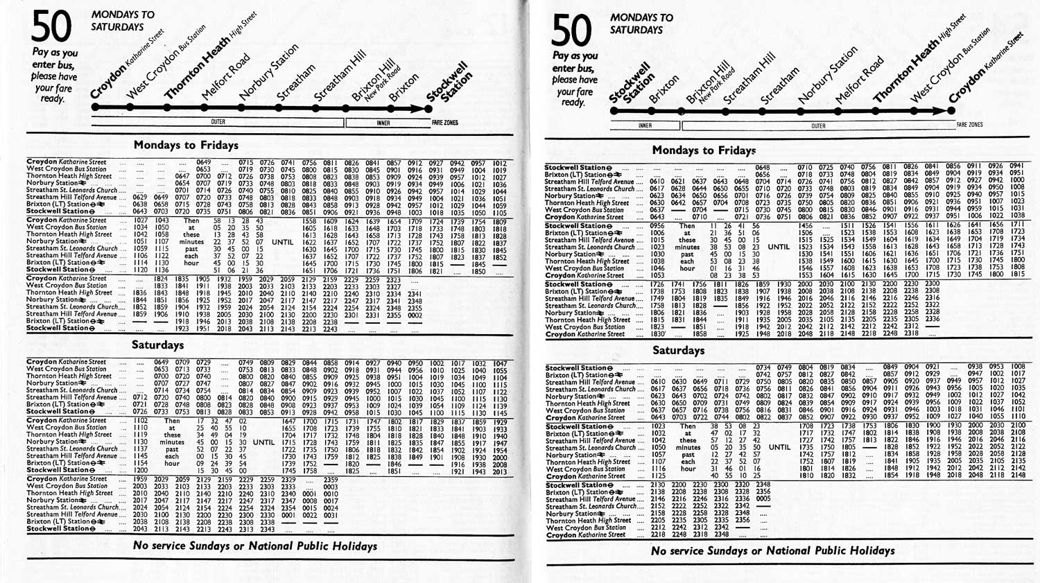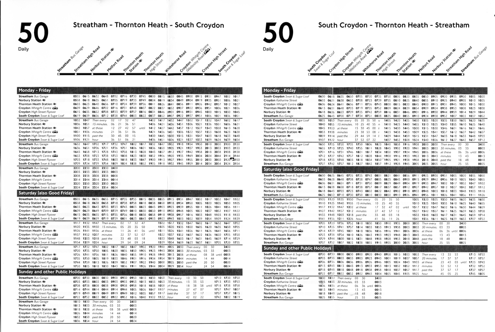 but extended from Streatham to Thornton Heath (Suns) and further extended