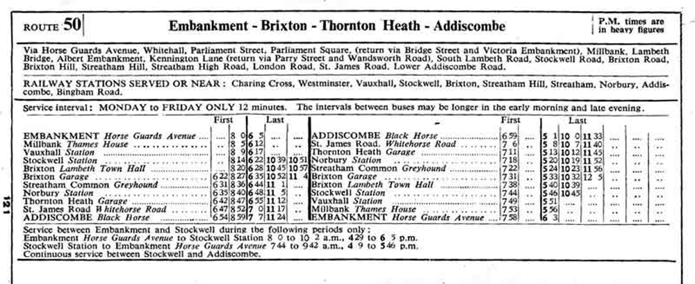 ADDISCOMBE - STOCKWEL ( Mon-Sat ) - EMBANKMENT (Mon-Fri peaks)