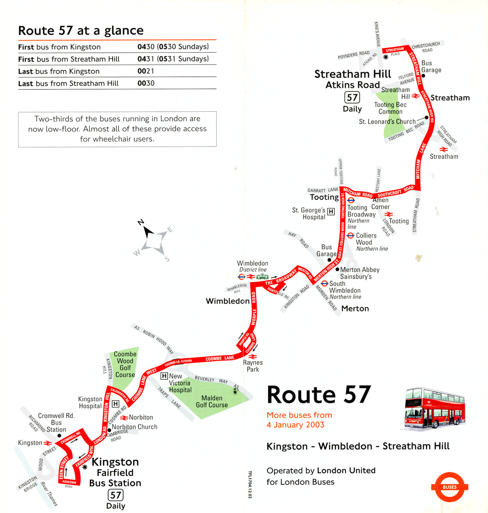 STREATHAM HILL Atkins Road (Monday-Saturday) - TOOTING BROADWAY (Sundays) - KINGSTON
