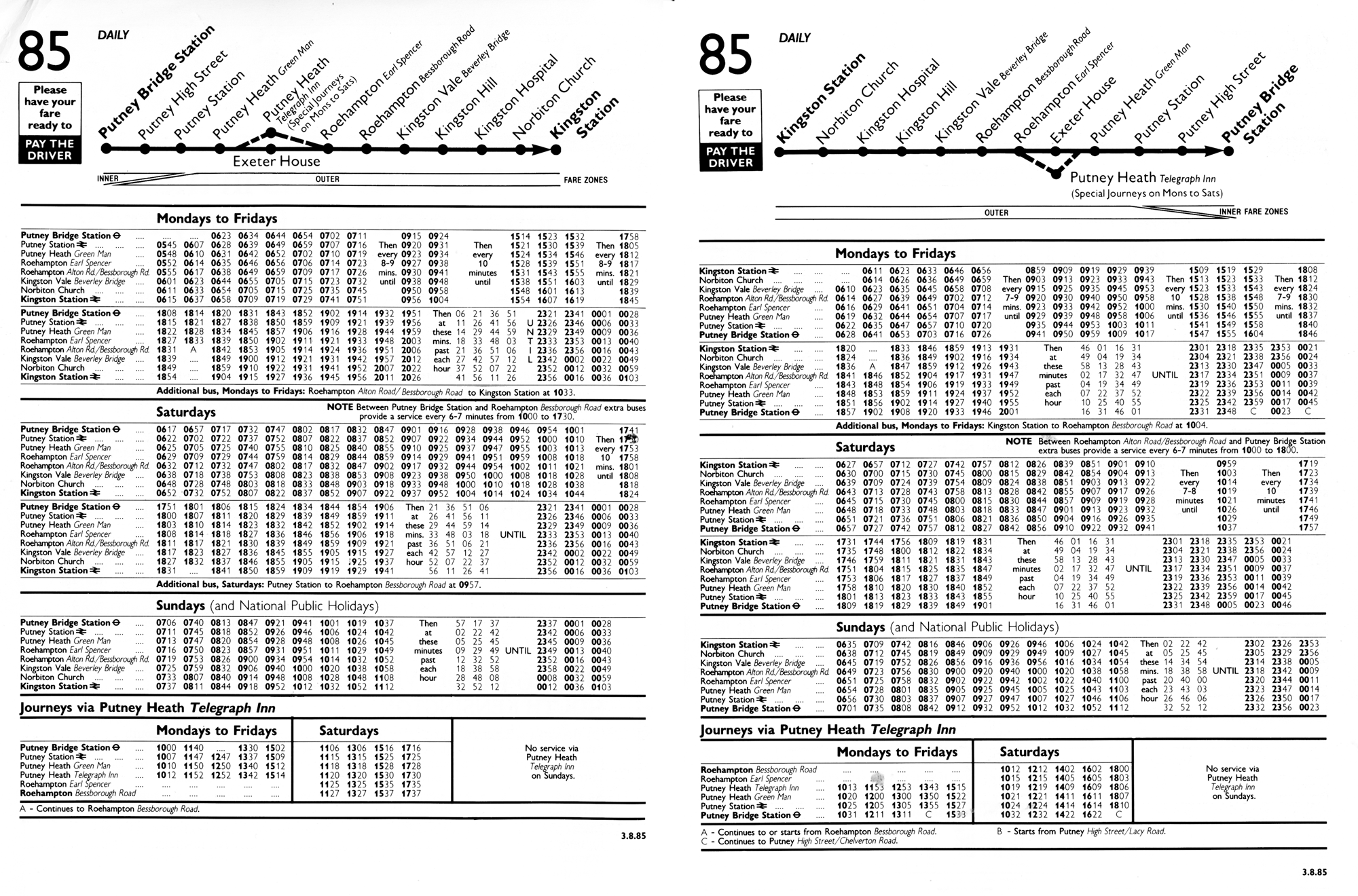 See timetable, interesting to note that Route 14 also ran on Sunday between Putney and Kingston