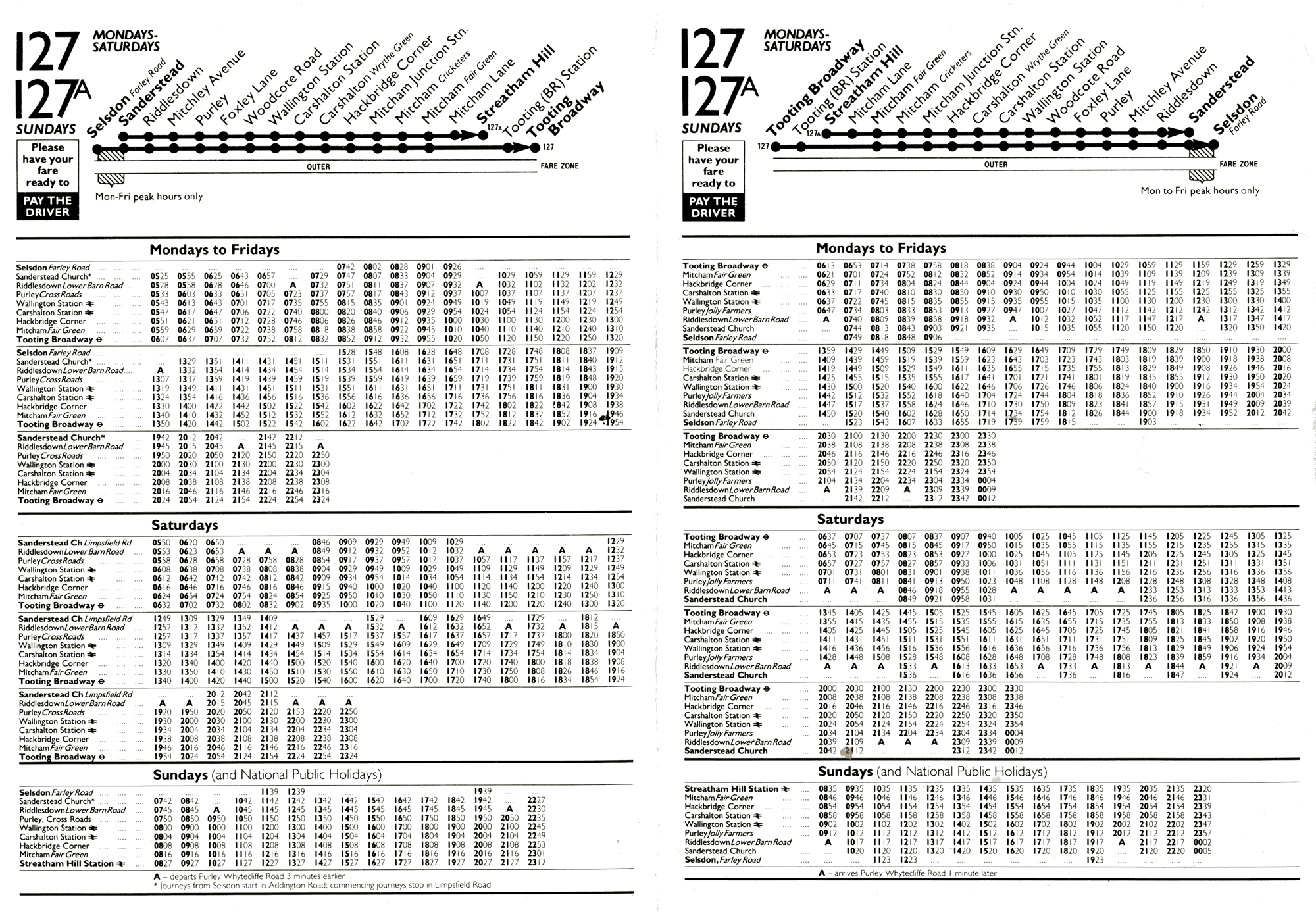 Mon-Sat extended from Purley to Sanderstead Church.