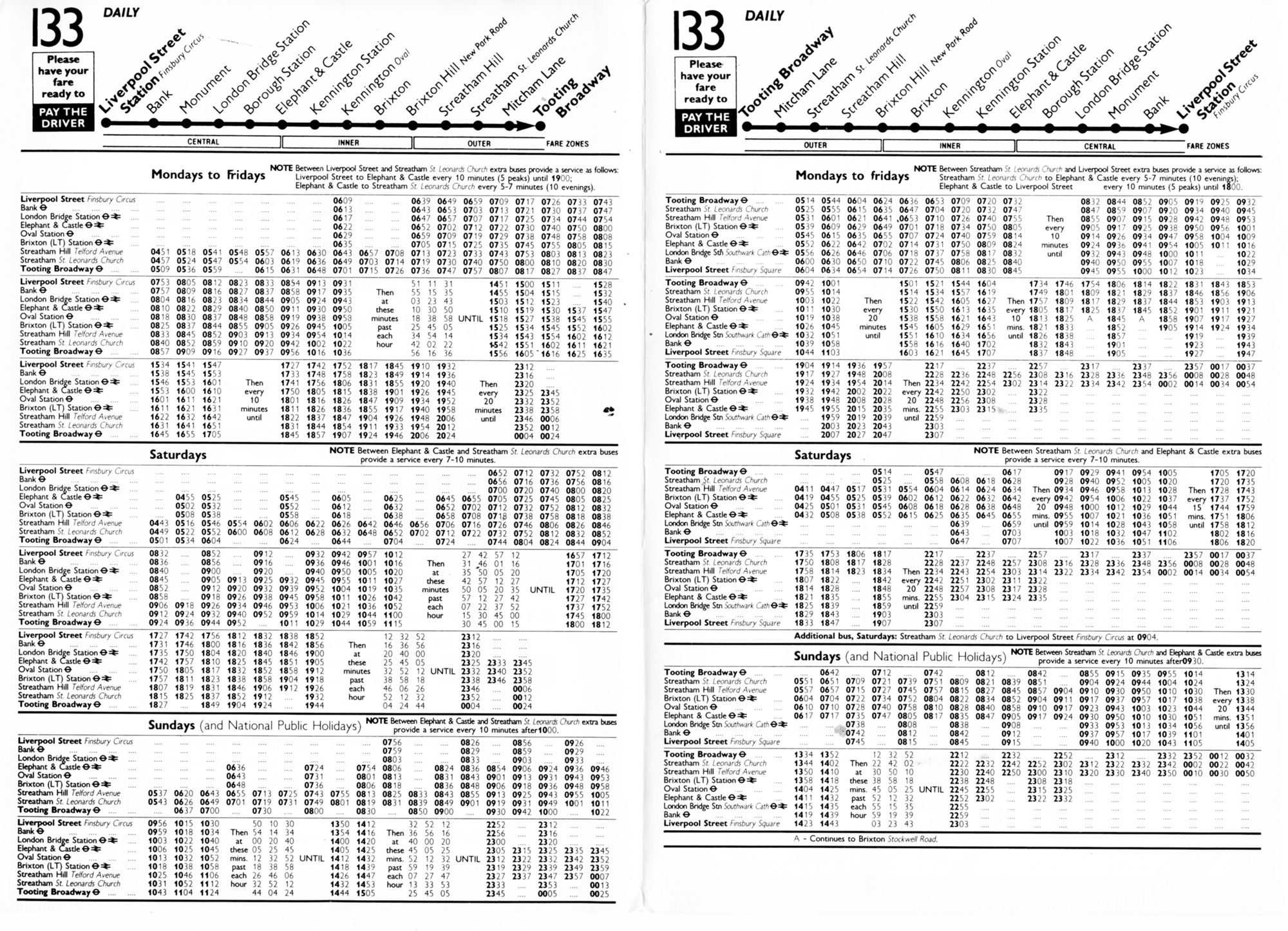 LIVERPOOL STREET - STREATHAM COMMON - SOUTH CROYDON Swan & Sugar Loaf ( except evenings)