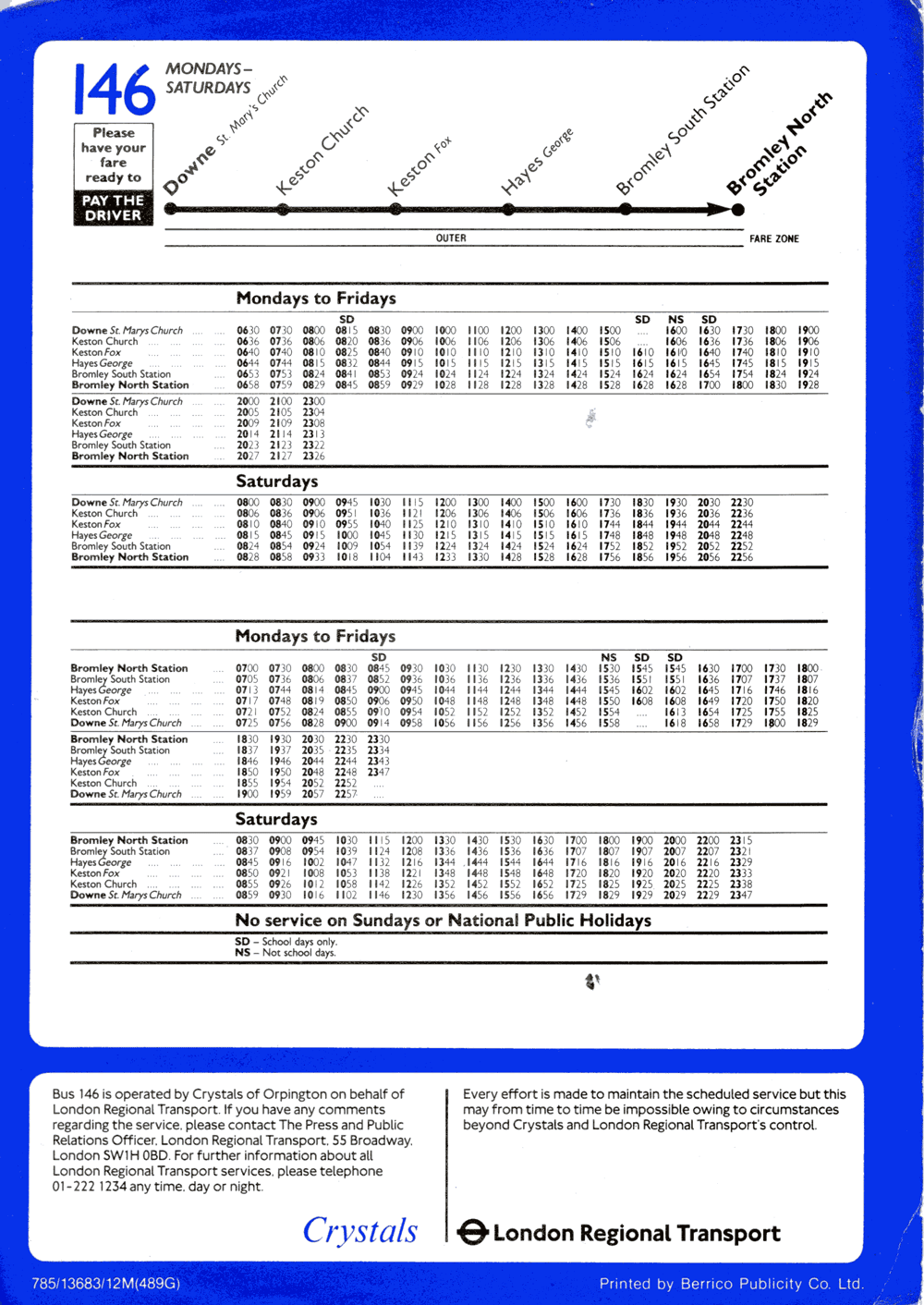 Sunday reintroduction for Summer months but diverted to Downe instead of Westerham Hill but extended from Bromley to Lewisham