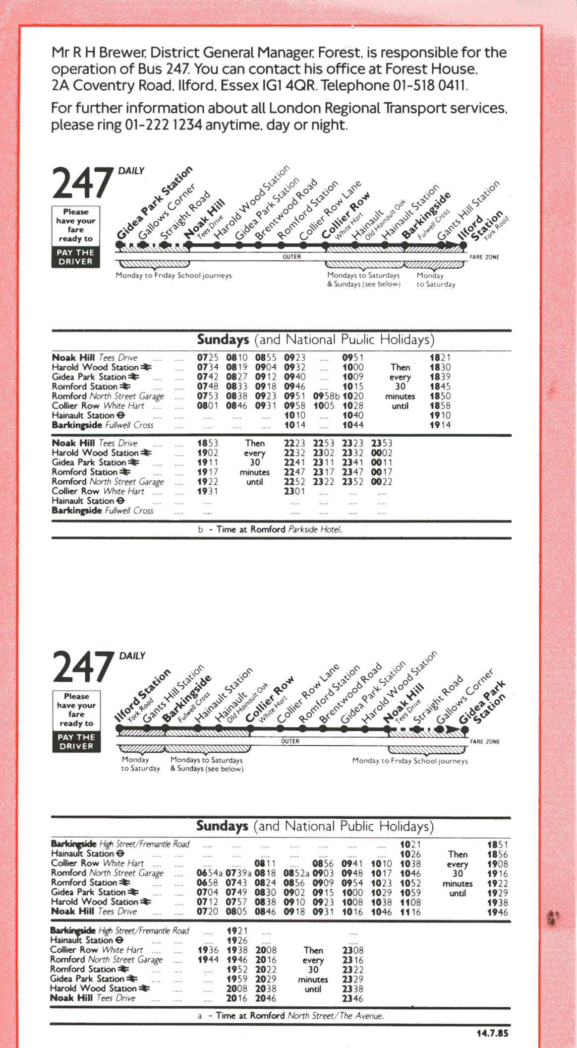 Sunday service extended from Collier Row to Barkingside.