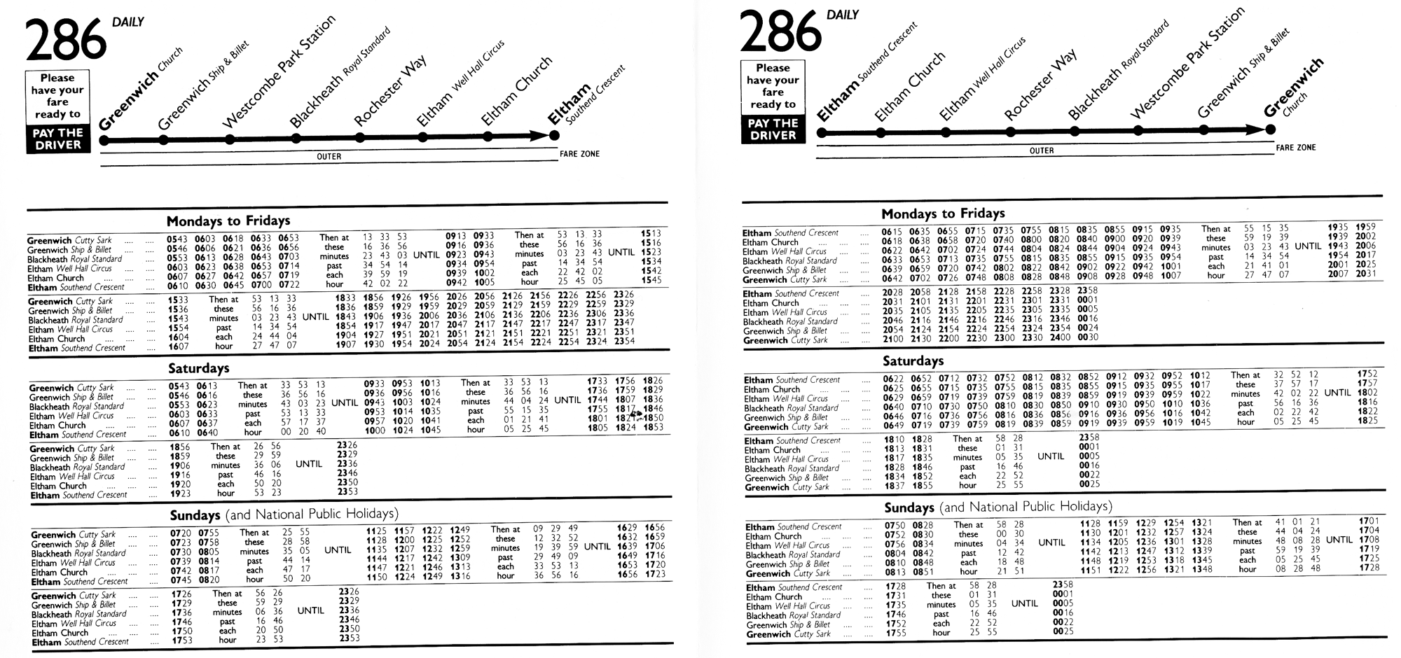 daily between the "Dover Patrol" and Shooters Hill Road via Kidbrooke