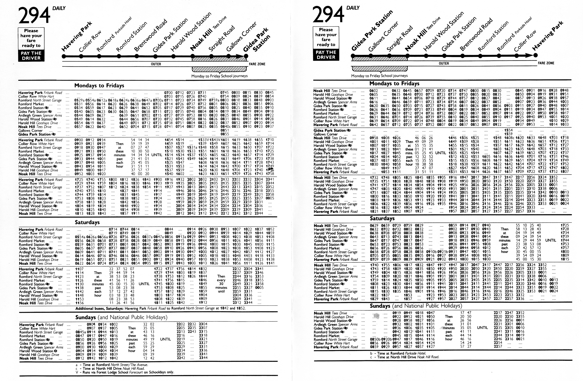 Collier Row - Romford - Brentwood Road - Gidea Park - Harold Wood Stn - Gooshays