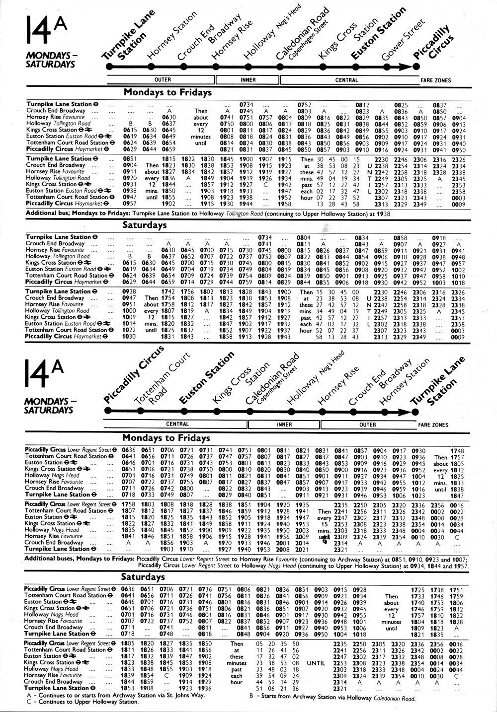 Caledonian Road - Kings Cross - Euston - Tottenham Court Road - PICCADILLY CIRCUS (Mon-Sat)