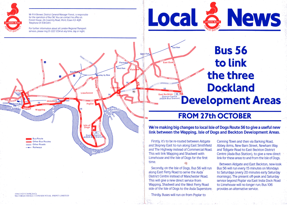 Rerouted on Isle of Dogs via Limeharbour instead of Manchester Road