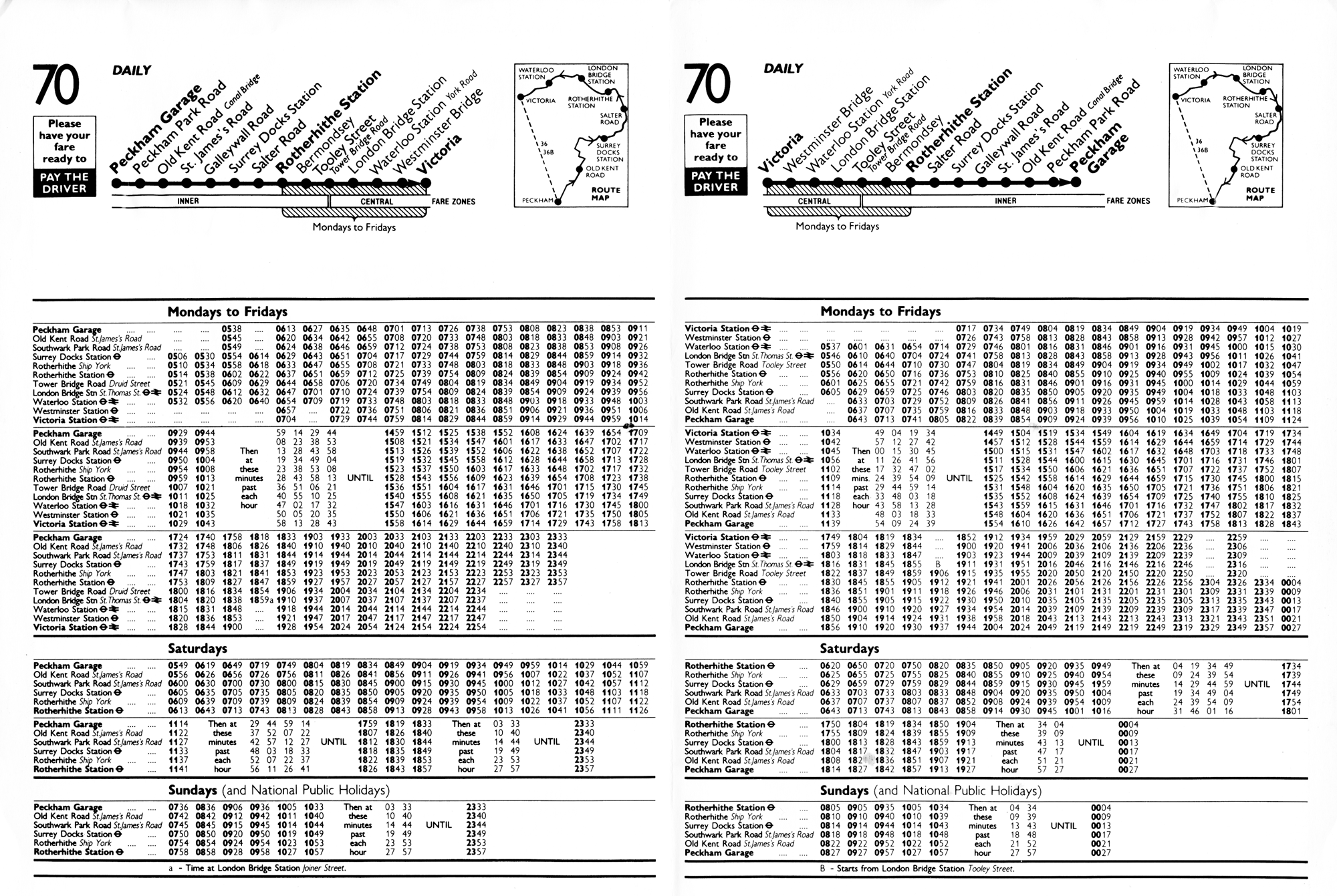 PECKHAM GARAGE - South Bermondsey - Surrey Docks - Redriff Road - ROTHERHITHE STN (Sat/Sun) - VICTORIA (Mon-Fri)