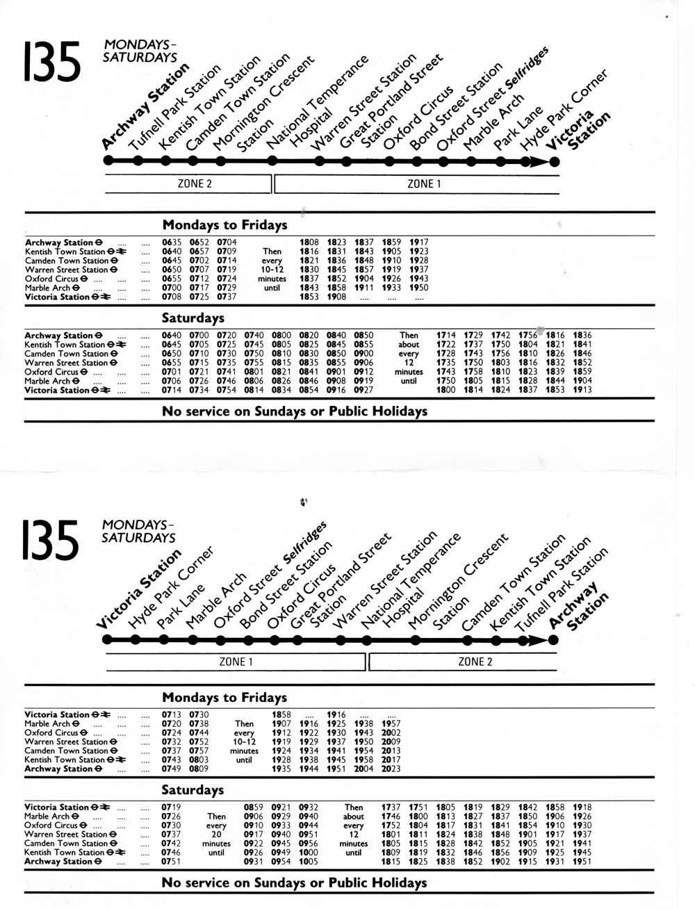 STATION - MARBLE ARCH ( evenings) - VICTORIA (withdrawn after pm peak)
