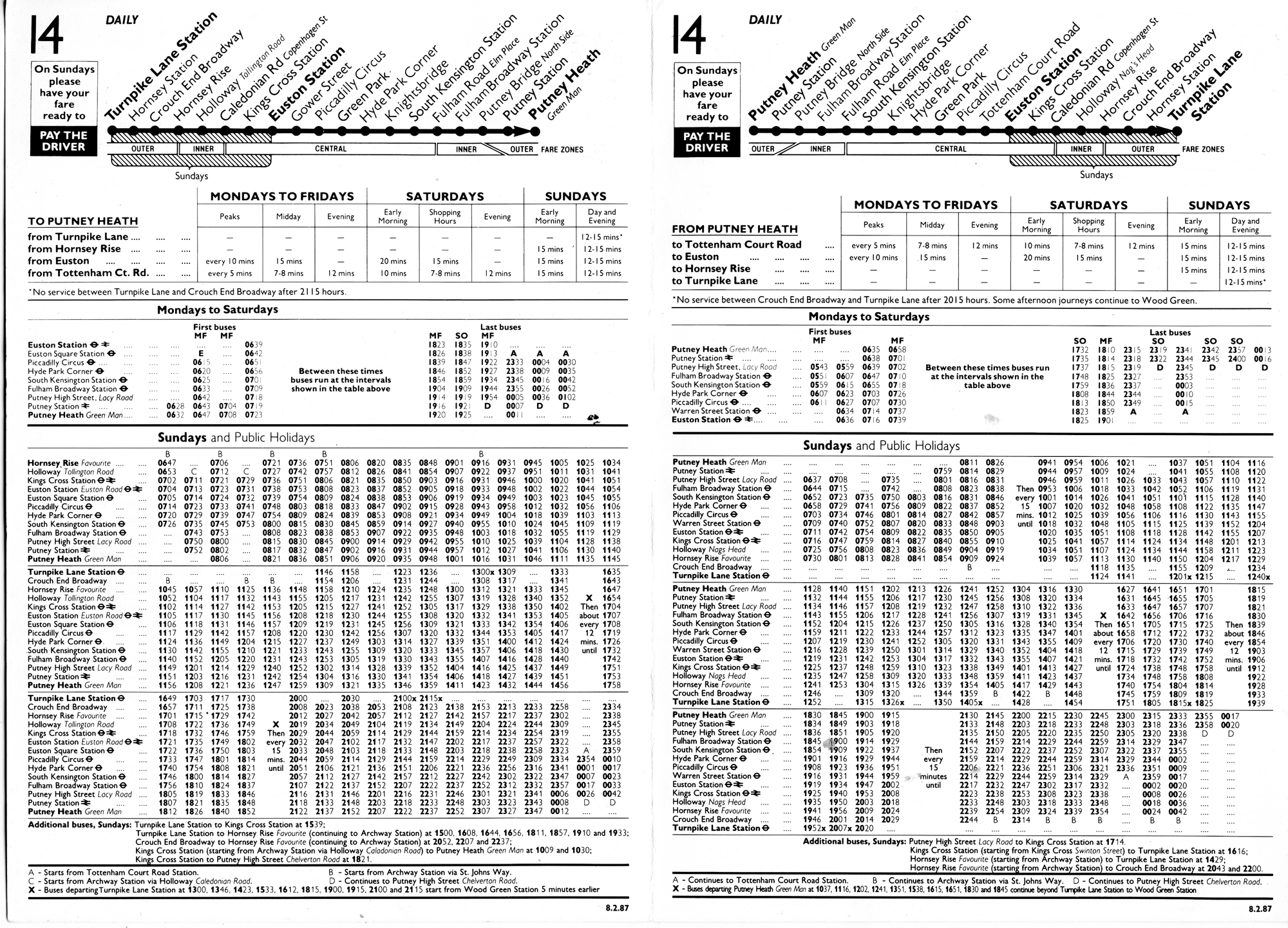 HORNSEY RISE - PUTNEY Oxford Road ( Mon-Fri / Sat am ) - KINGSTON VALE( Mon-Sat peak journeys) - HAMPTON COURT ( Sat pm /Suns )