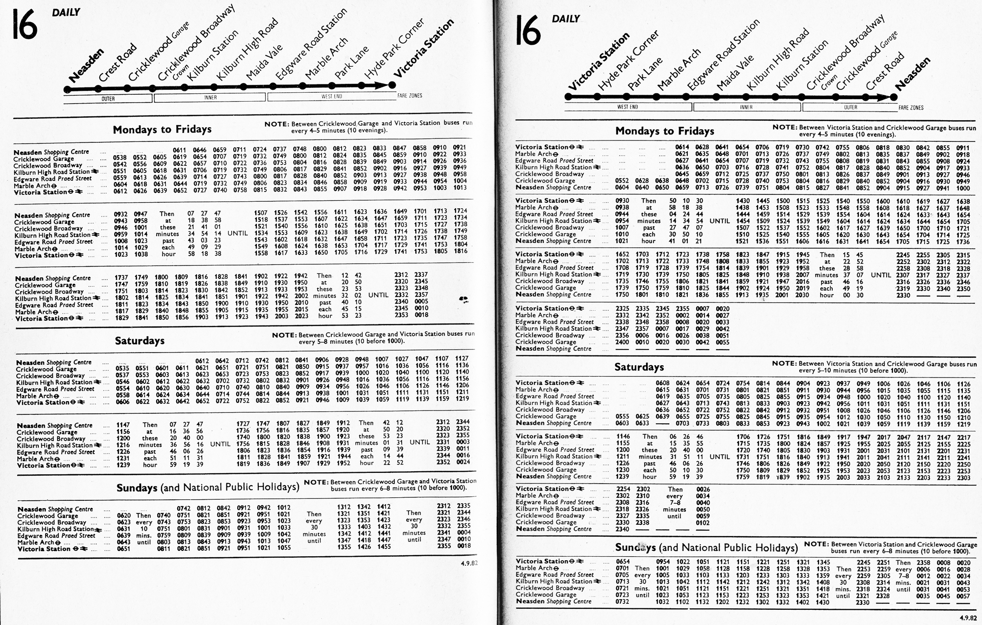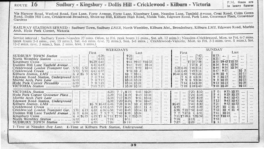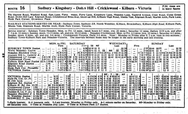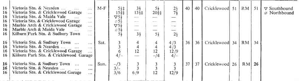 Withdrawn between Cricklewood and West Hendon but extended daily from Cricklewood to Sudbury Town Station except Sunday evenings when it was curtailed at Neasden