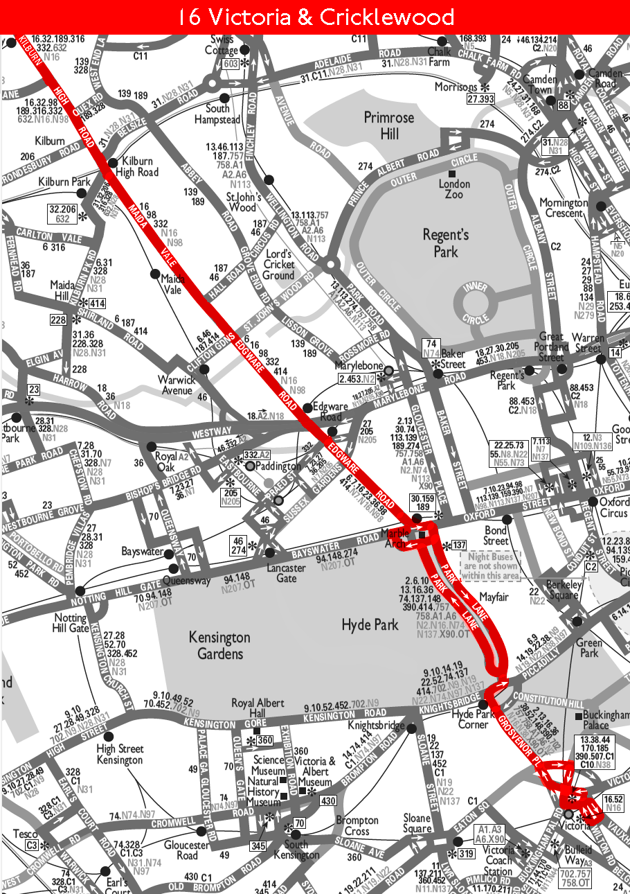 VICTORIA STATION - Hyde Park Corner - Marble Arch - Edgware road - Maida Vale - Kilburn - Shoot up Hill - CRICKLEWOOD Crown ( Mon-Sat ) - Edgware Road - WEST HENDON ( Suns ) or North Circular Road - Neasden - Blackbird Cross - Wembley Park Stn - WEMBLEY STADIUM ( Thurs evenings )