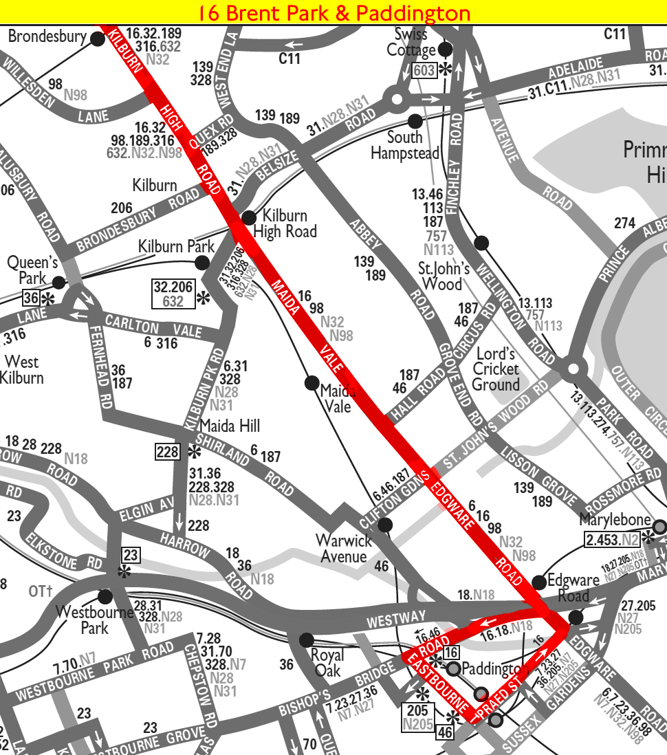 High Road Station - Kilburn High Road - Maida Vale - Edgware Road - Edgware