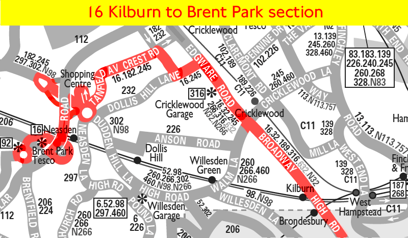 - Shoot,up Hill - Cricklewood Broadway - Edgware Road - Dollis Hill Lane -