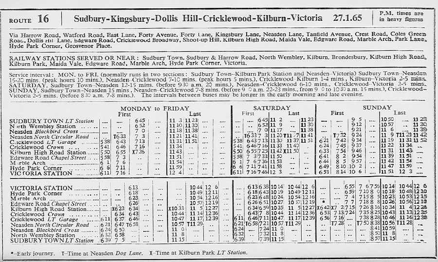 VICTORIA STATION - CRICKLEWOOD Crown ( Mon-Sat ) - WEST HENDON ( Suns ) or WEMBLEY STADIUM ( Thurs evenings )