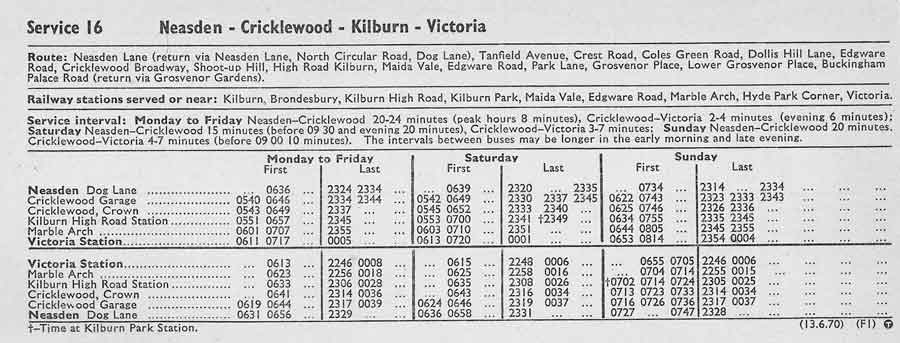 VICTORIA STATION - CRICKLEWOOD Crown ( Mon-Sat ) - WEST HENDON ( Suns )