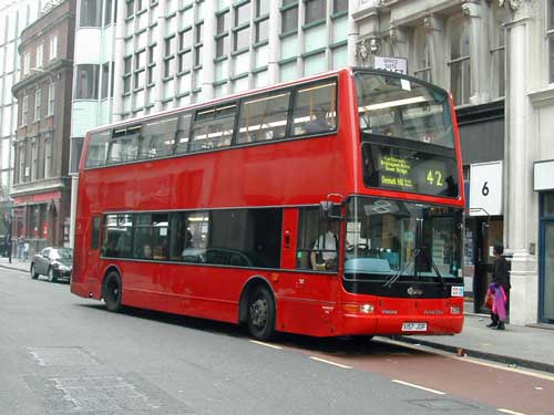 VPL174 usually worked Route 185 but is seen here at Minories - helping out, currently with Sullivan Buses