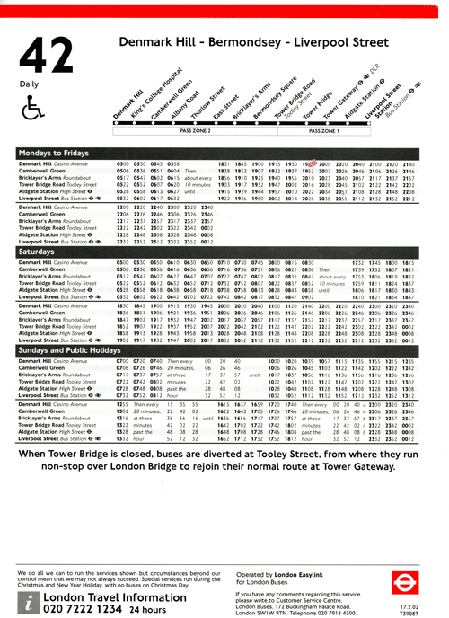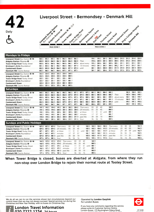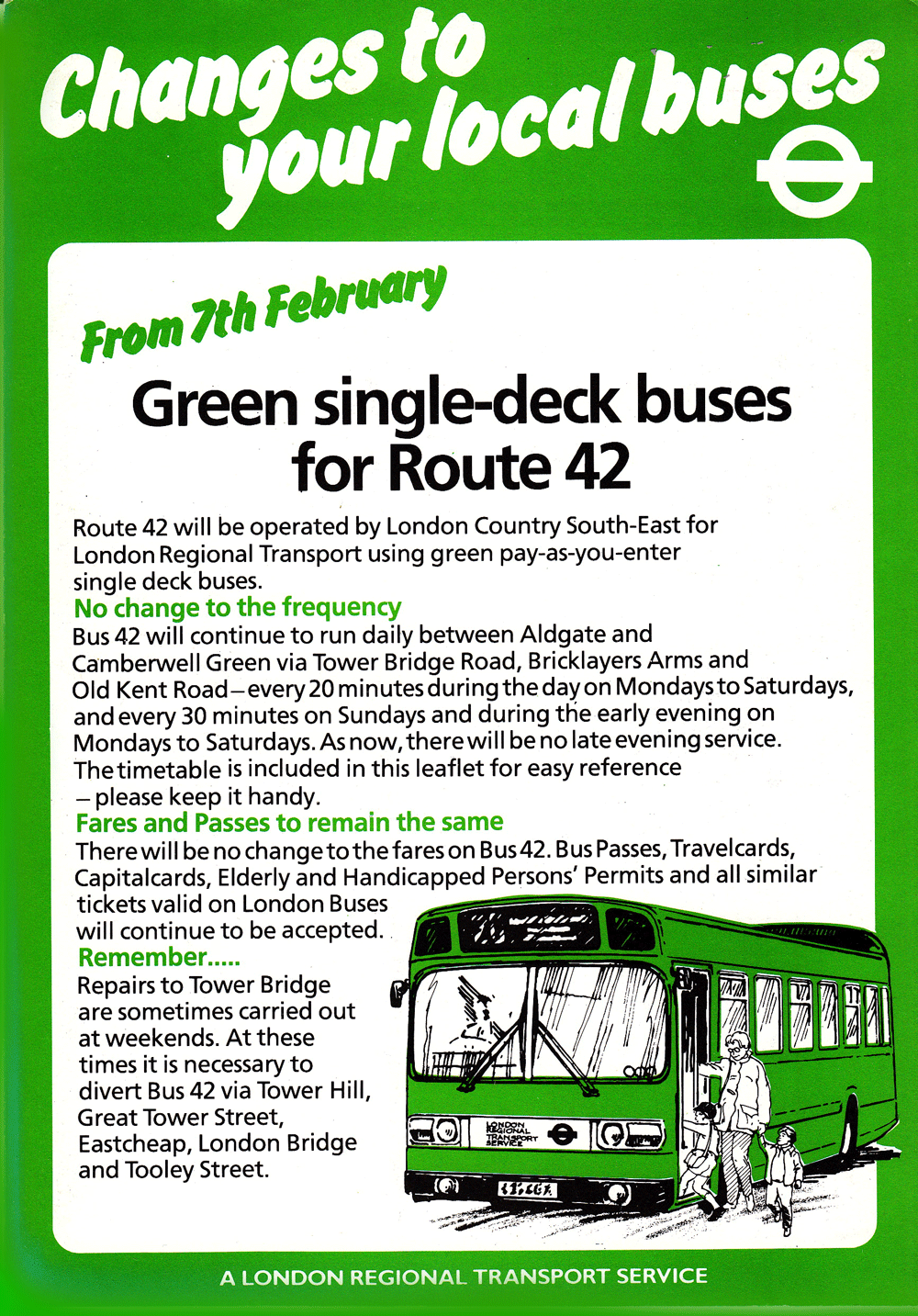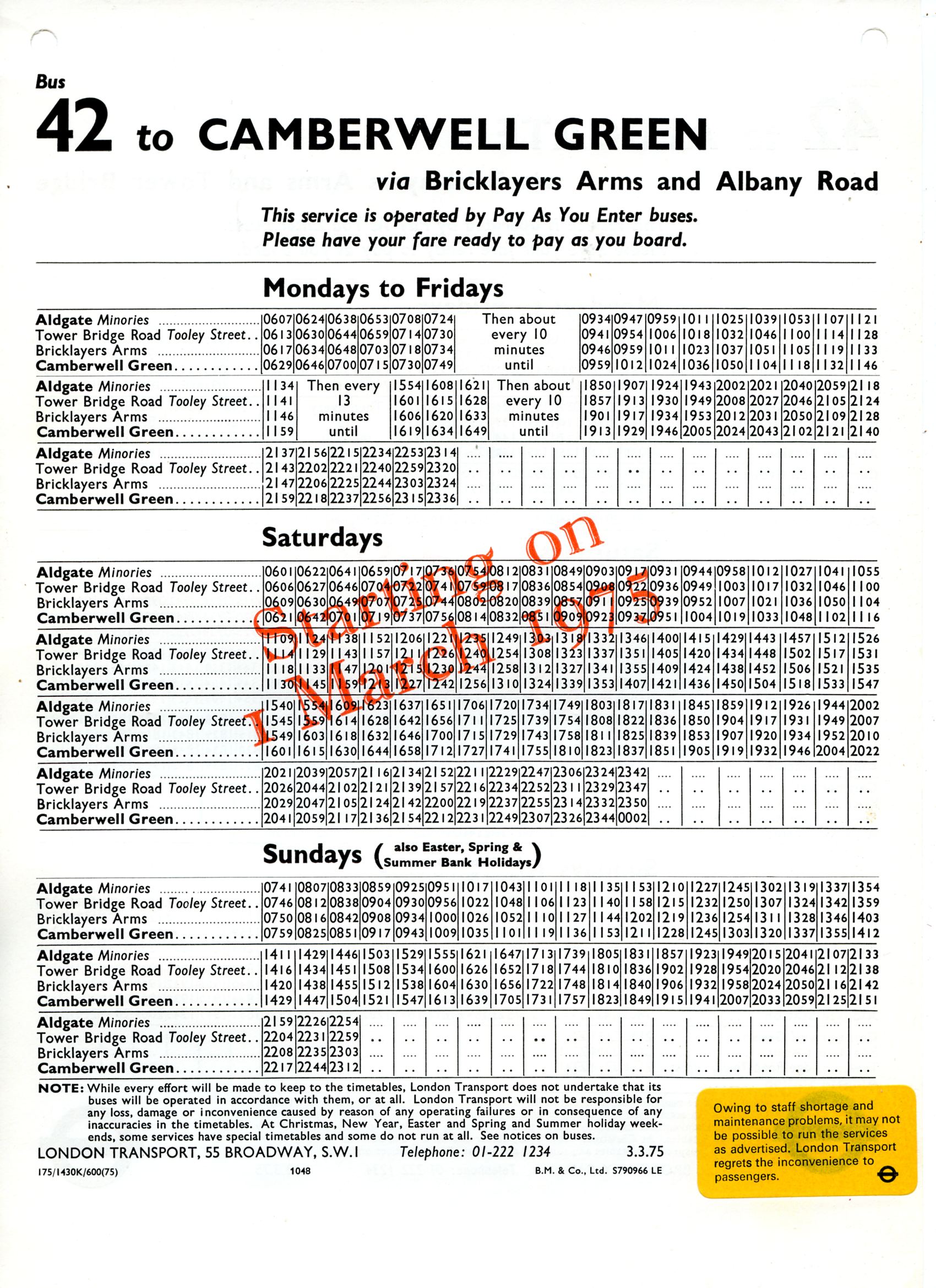 Sat afternoons extended from Camberwell Green to Clapham Common to compensate for Route 42A withdrawal