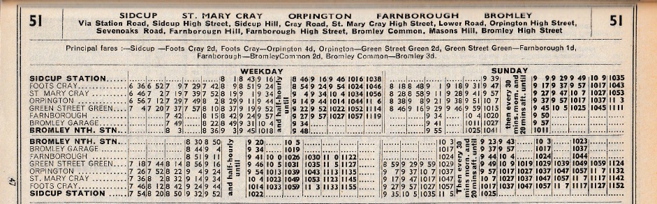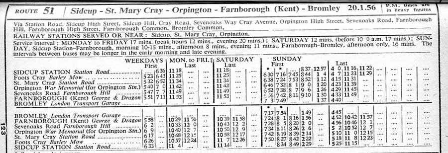STATION (Sat/Sun) - SIDCUP STN (Mon-Fri) - FARNBOROUGH -; BROMLEY GARAGE (Sun aft)