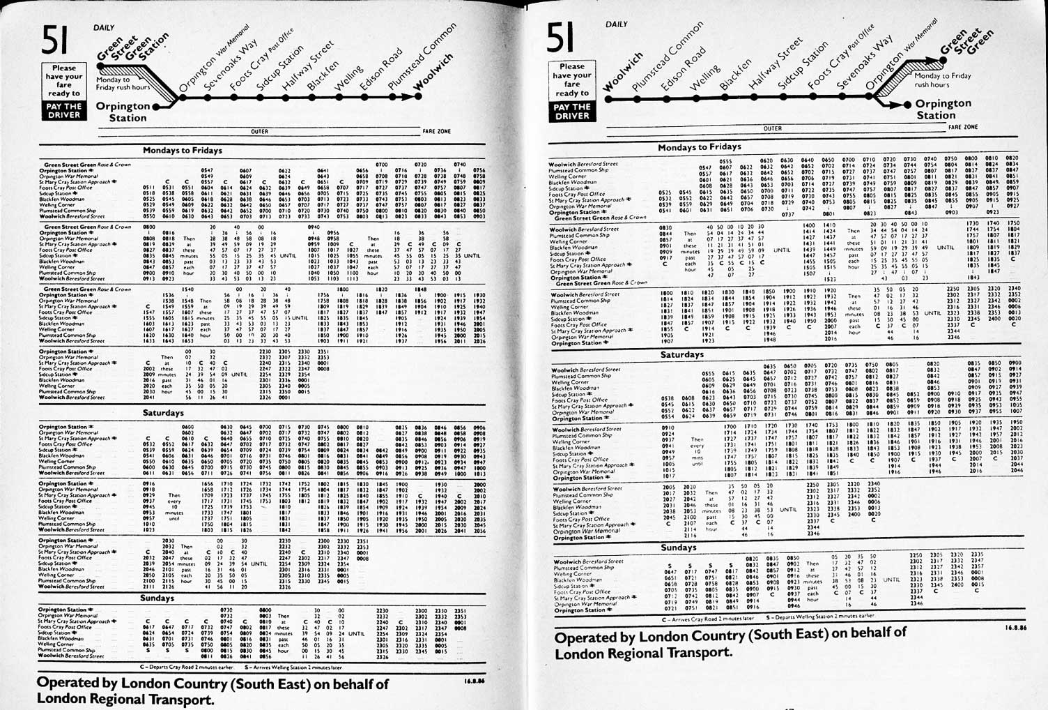 Daily journeys bifurcated to Orpington Station but were numbered 51B