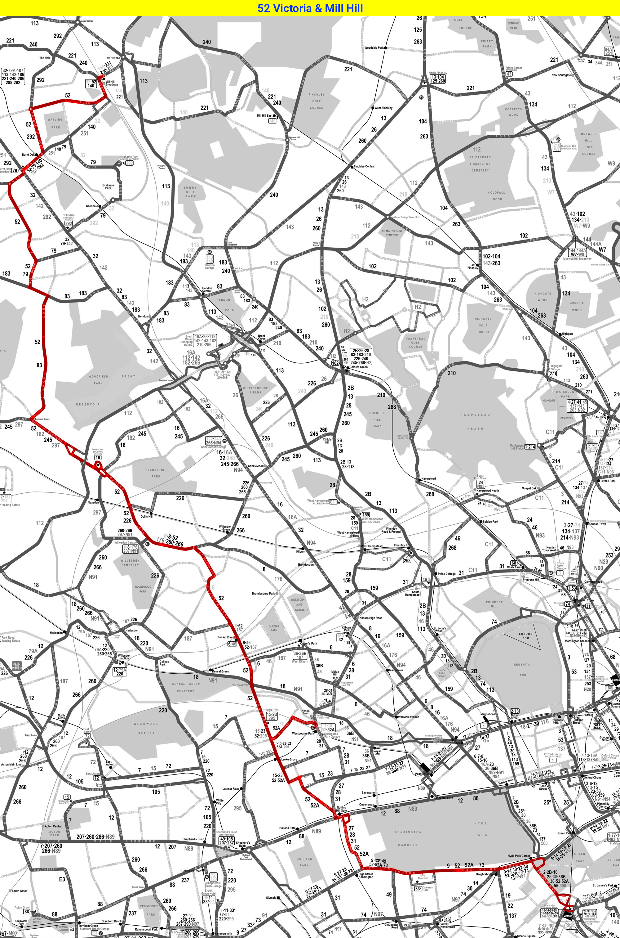 VICTORIA - MILL HILL Green Man - Deans Lane - Selvage Lane - Barnet By Pass - Stirling Corner - Elstree Way - Shenley Road - BOREHAMWOOD Drayton Road ( Mon-Sat peaks )