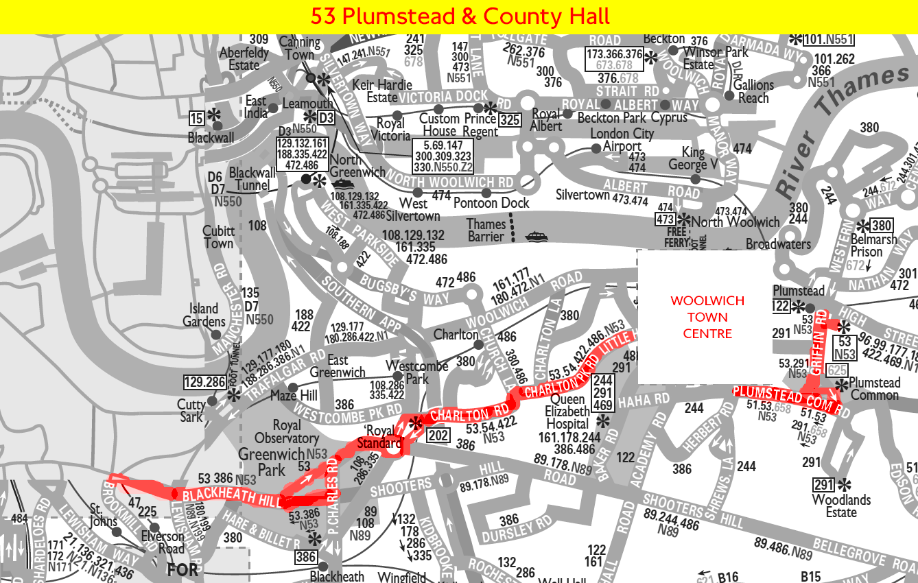 Deptford Broadway - Blackheath - Charlton - Woolwich - PLUMSTEAD COMMON ( Mon-Sat ) - PLUMSTEAD GARAGE (Suns)