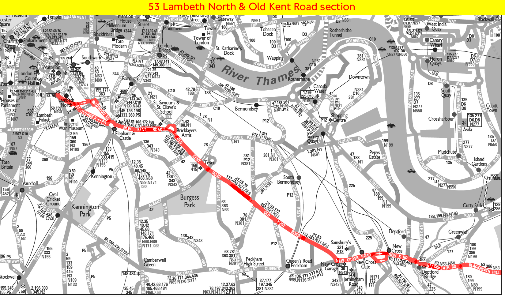 Day service withdrawn between County Hall and Whitehall, night service remains unchanged but renumbered N53