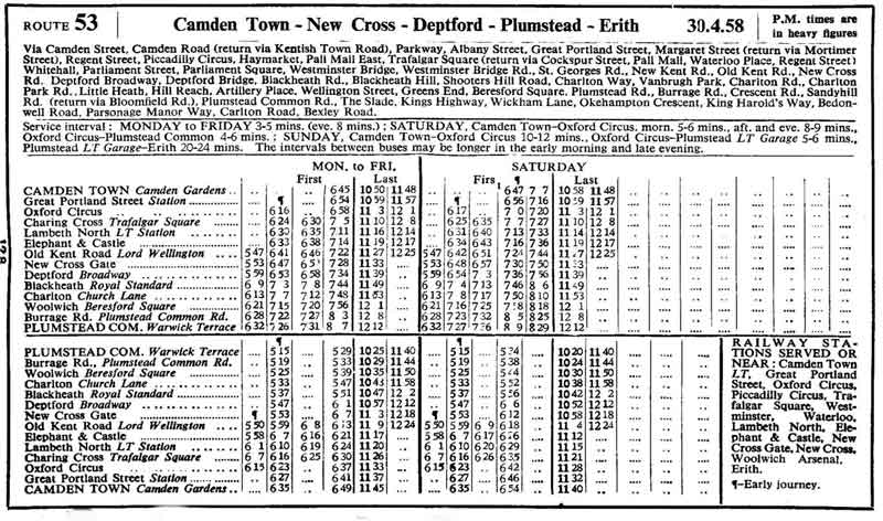 CAMDEN TOWN - PLUMSTEAD COMMON ( Mon-Sat ) - ERITH ( Suns )