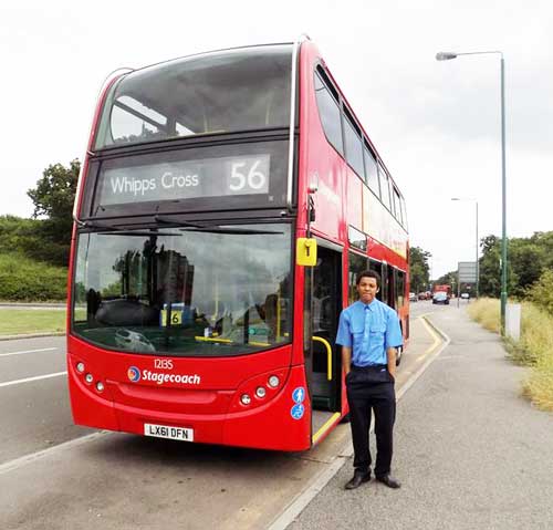 Hybrid 12135 waits at Whipps Cross with proud driver Dave McKay who had just recently passed out as a driver for Stagecoach © Dave McKay |