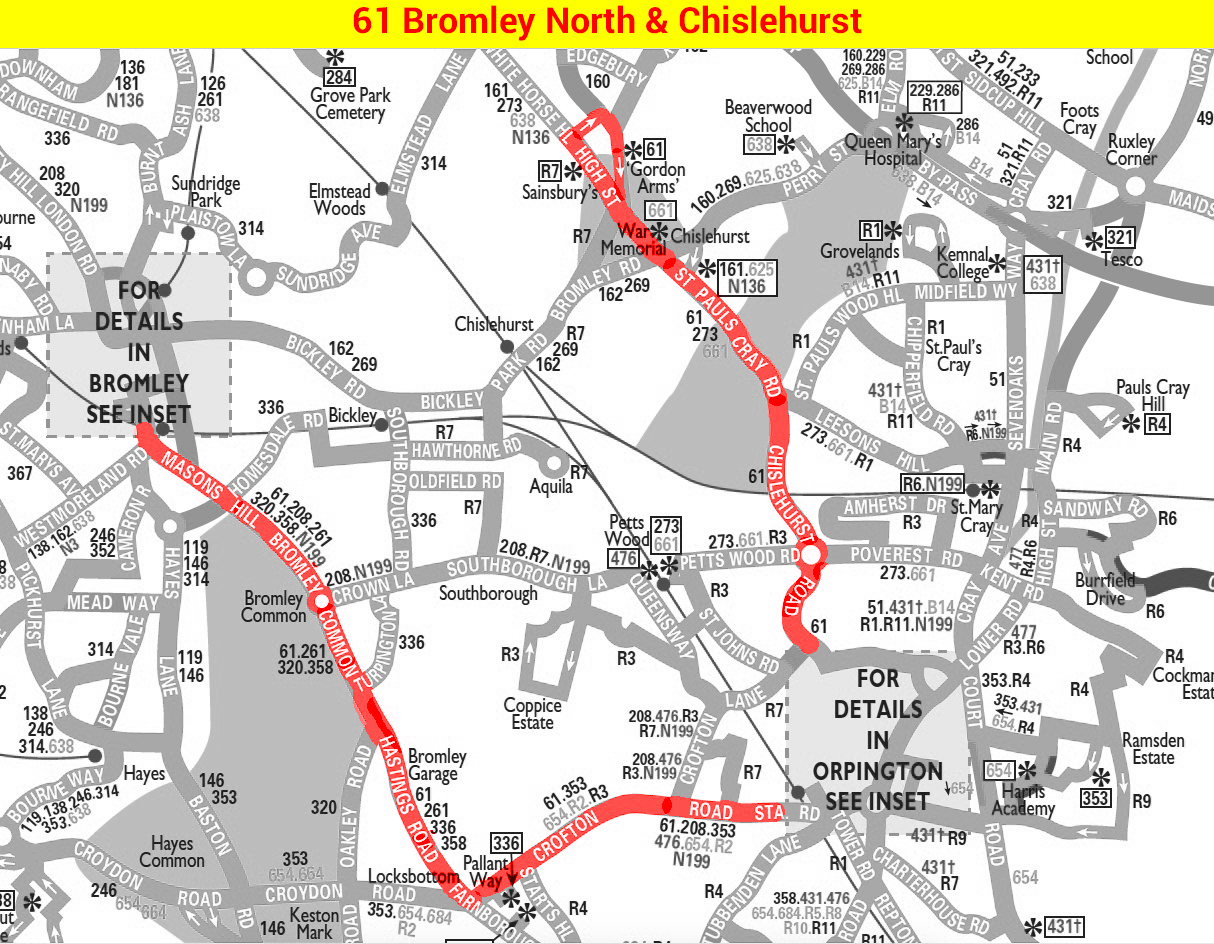 points at Orpington pond/Goodmead Rd for routes 61,R1,R3,R4,and R11.These