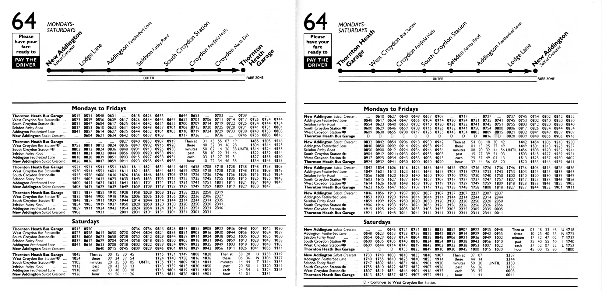 WEST CROYDON - SELSDON (Mon-Sat evenings ) - ADDINGTON Featherbed Lane ( except Mon-Sat evenings )
