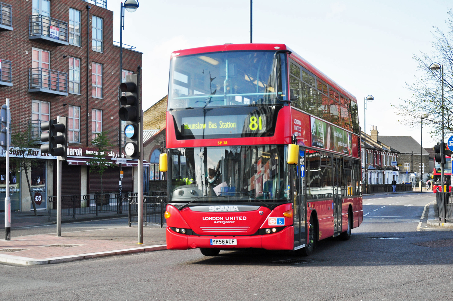 The Polish Scanias occasionally see service on the route as shown here by SP38 in Hounslow High Street