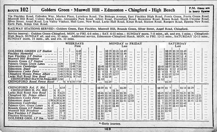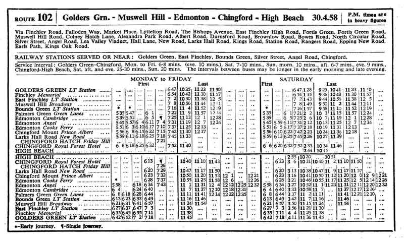 GOLDERS GREEN - CHINGFORD Royal Forest Hotel ( Mon-Sat ) - HIGH BEACH Kings Oak ( Suns )