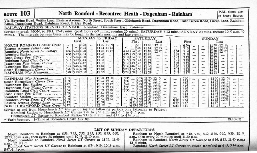 Rd - Becontree Heath - Dagenham East - South Hornchurch - RAINHAM War