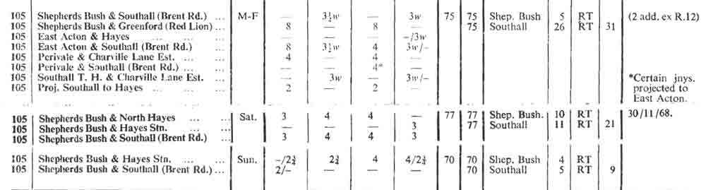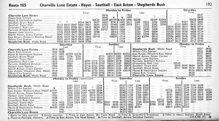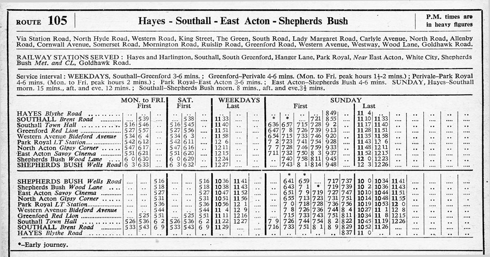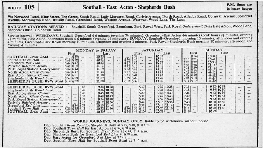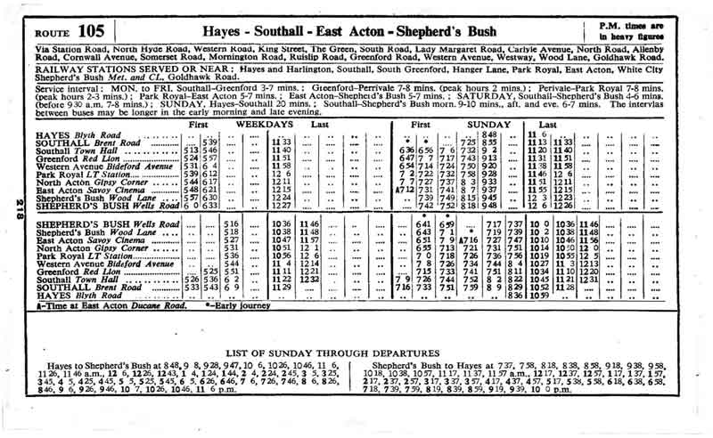 SHEPHERDS BUSH Wells Road - SOUTHALL Brent Road ( Mon-Sat ) - North Hyde Road - HAYES Blythe Road ( Suns )