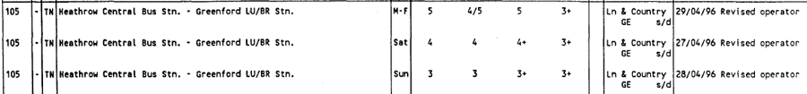 Mon-Sat withdrawn between Southall and Hounslow Heath - this section replaced by reintroduced Route 120