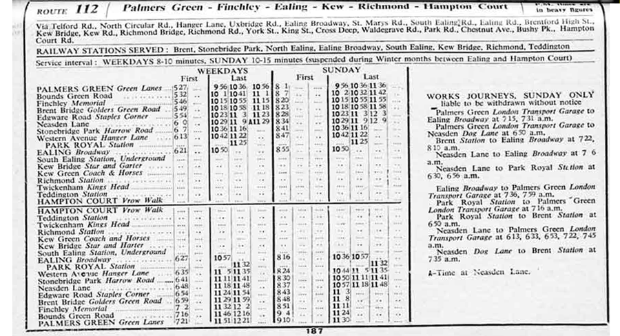 Sunday extended from Ealing to Hampton Court via Route 65 and 27A