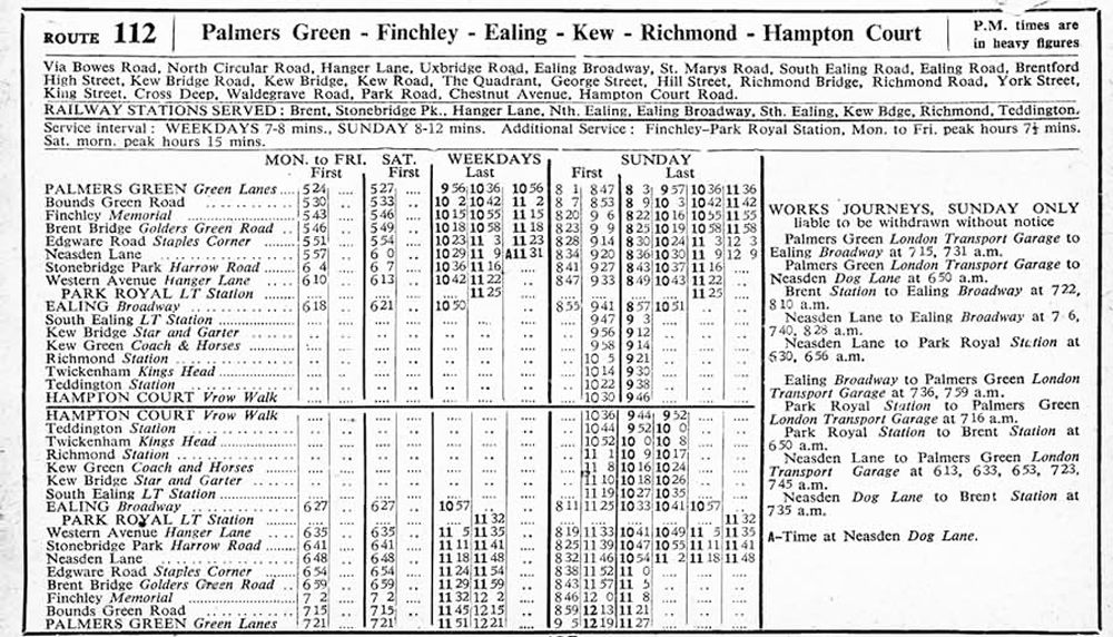 PALMERS GREEN - Bowes Rd - North Circular Rd - Finchley - Brent - Neasden - Stonebridge Park - Hanger Lane - Ealing Common - Ealing Broadway - Sth Ealing - Kew Bridge - KEW GREEN