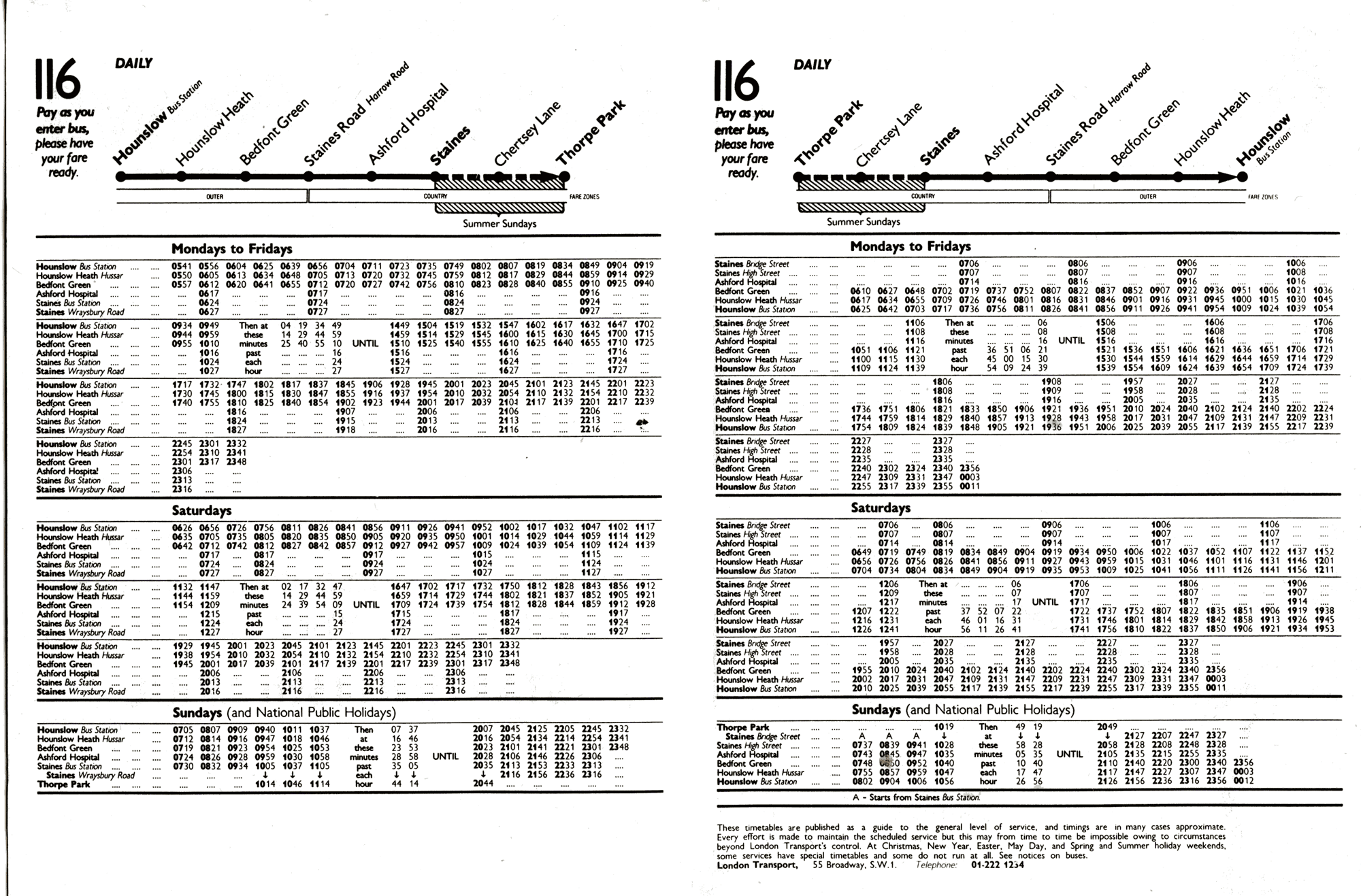 HOUNSLOW GARAGE - STAINES - ( Mon-Fri / Sat am ) - EGHAM ( Sat pm ) - VIRGINIA WATER ( Suns )