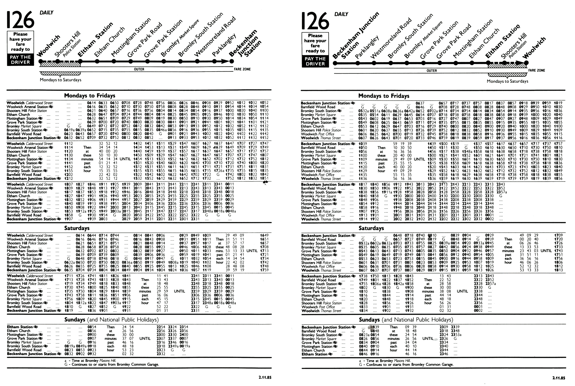Garage but diverted between Eltham and Wellnig via Eltham Park ( previous 160A routeing )