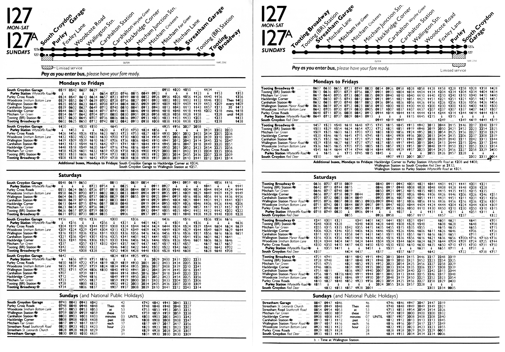 HILL STN (Suns) or TOOTING BROADWAY ( Mon-Sat ) - SANDERSTEAD