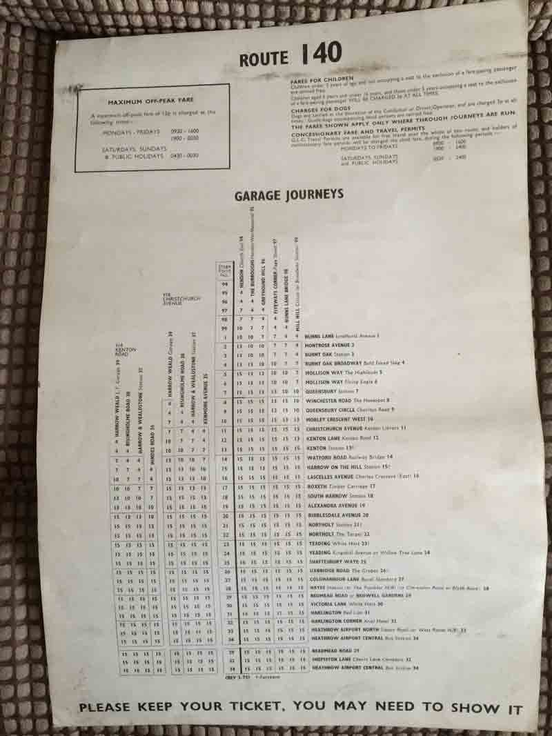 The 140 was a lovely Road - with nice early finishes and no desperately bad spreadovers. No 1 used book on 0522 and finish in the garage at 1007 but No 2 was even better with SO at 0532 and 0935 in the garage. Not quite as good as the first duty at Colindale which used to SO at 0412 and finish outside depot at 0832 - all 666s that was.