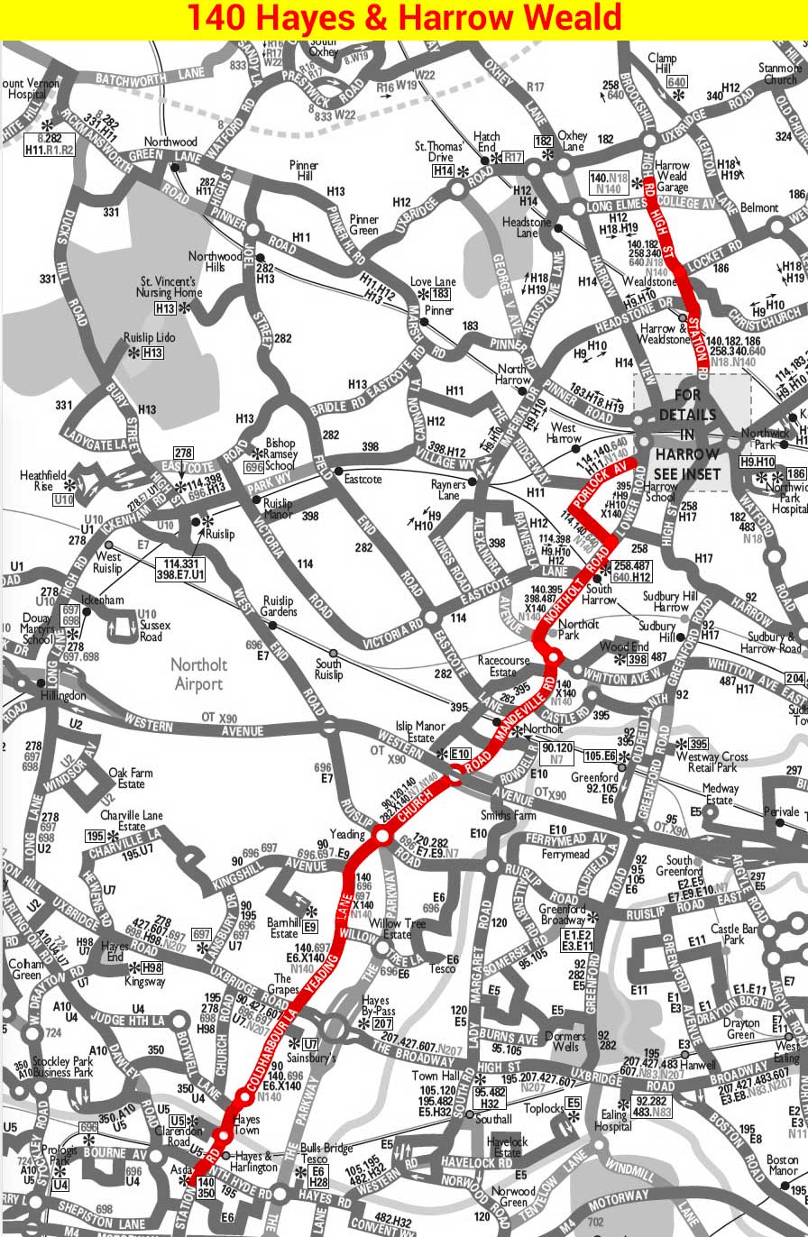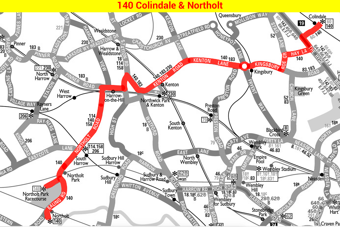 COLINDALE STATION - Hay Lane - Kingsbury Green - Kingsbury - Kenton - Harrow Town Centre - South Harrow - NORTHOLT STATION or NORTHOLT RACECOURSE ( Mon journeys )