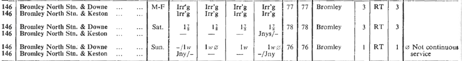 Sunday reintroduction for Summer months but diverted to Downe instead of Westerham Hill but extended from Bromley to Lewisham