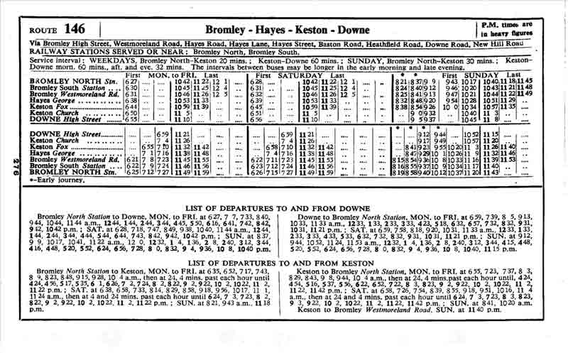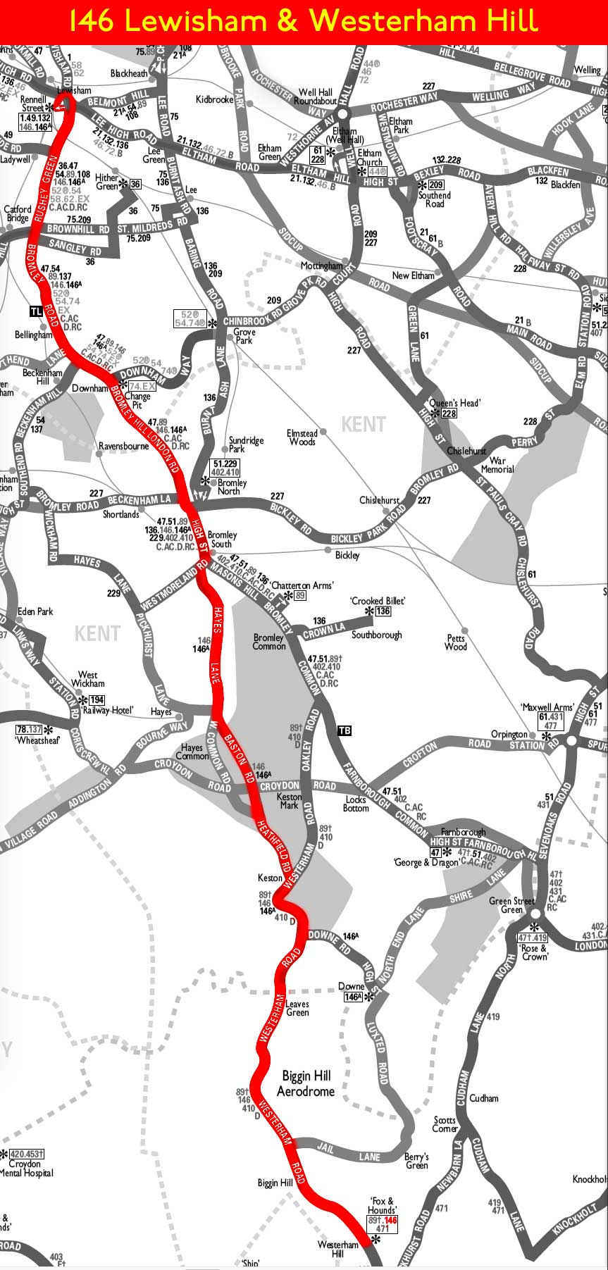 LEWISHAM Rennell Street - Catford - Bromley - Hayes Common - Keston - Leaves Green - Biggin Hill - WESTERHAM HILL ( Sat / Sun )