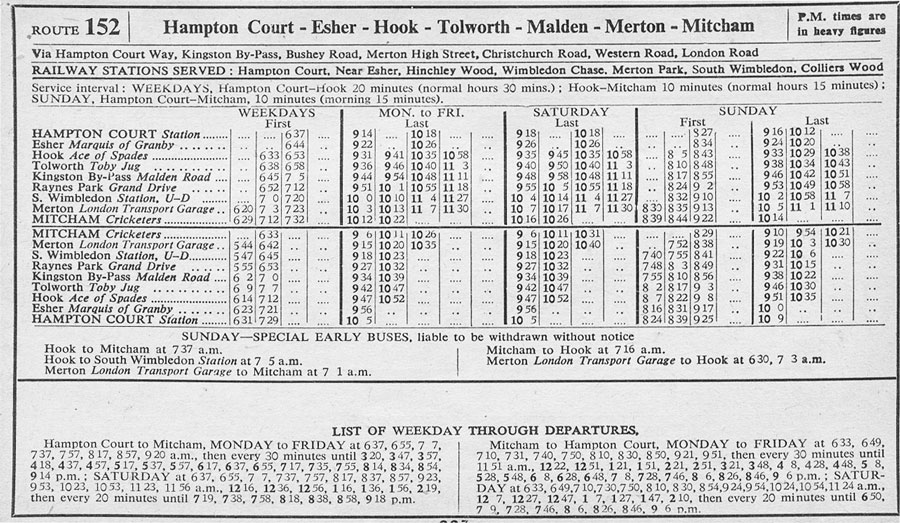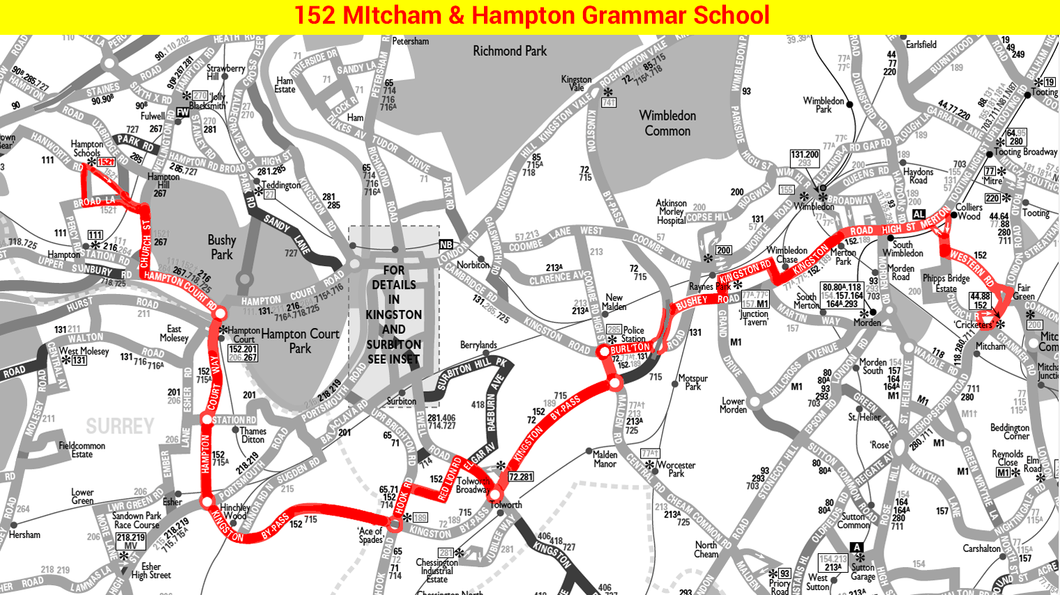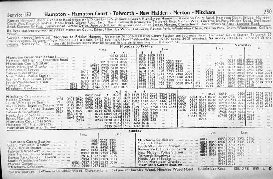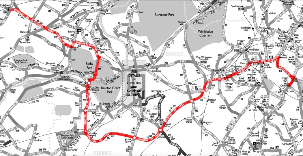 Note that the Bushey Park gates and Hampton Court gates timing points were for buses to and from Kingston Garage |