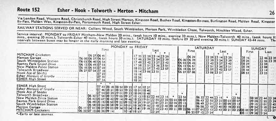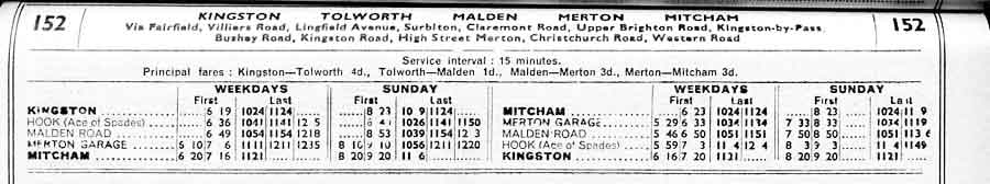 Withdrawn between New Malden and Kingston but extended from Mitcham to Pollards